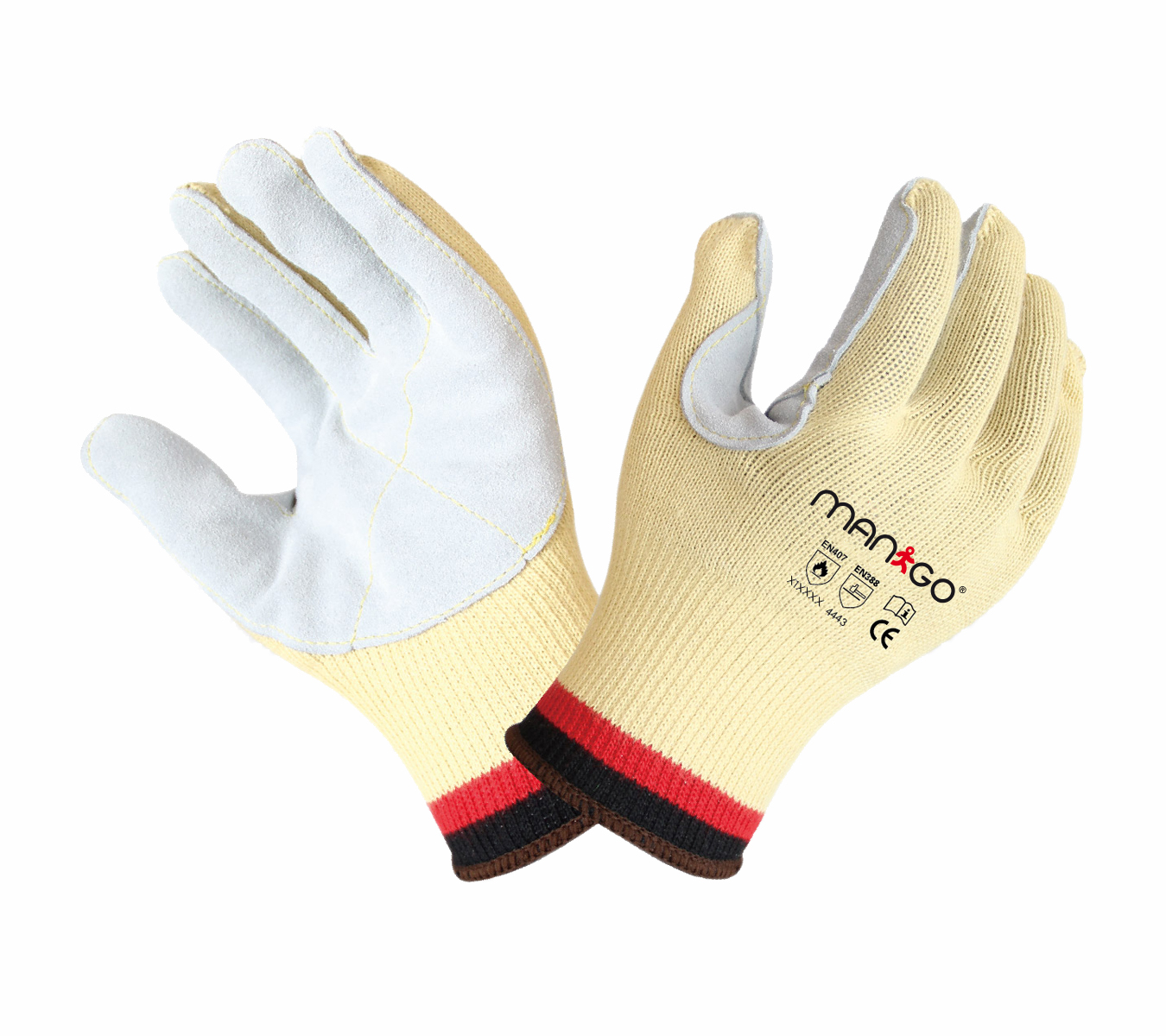 Арамидные перчатки  с кожаным покрытием  на ладони. Плотность вязки 10