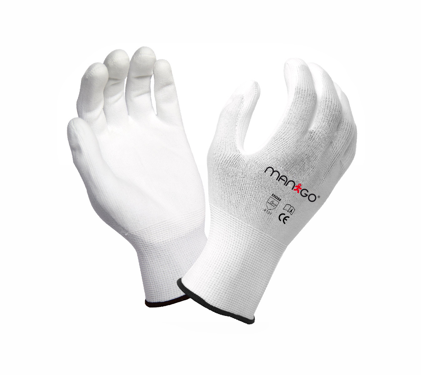 Бесшовные нейлоновые перчатки с ПУ покрытием, плотность вязки 13