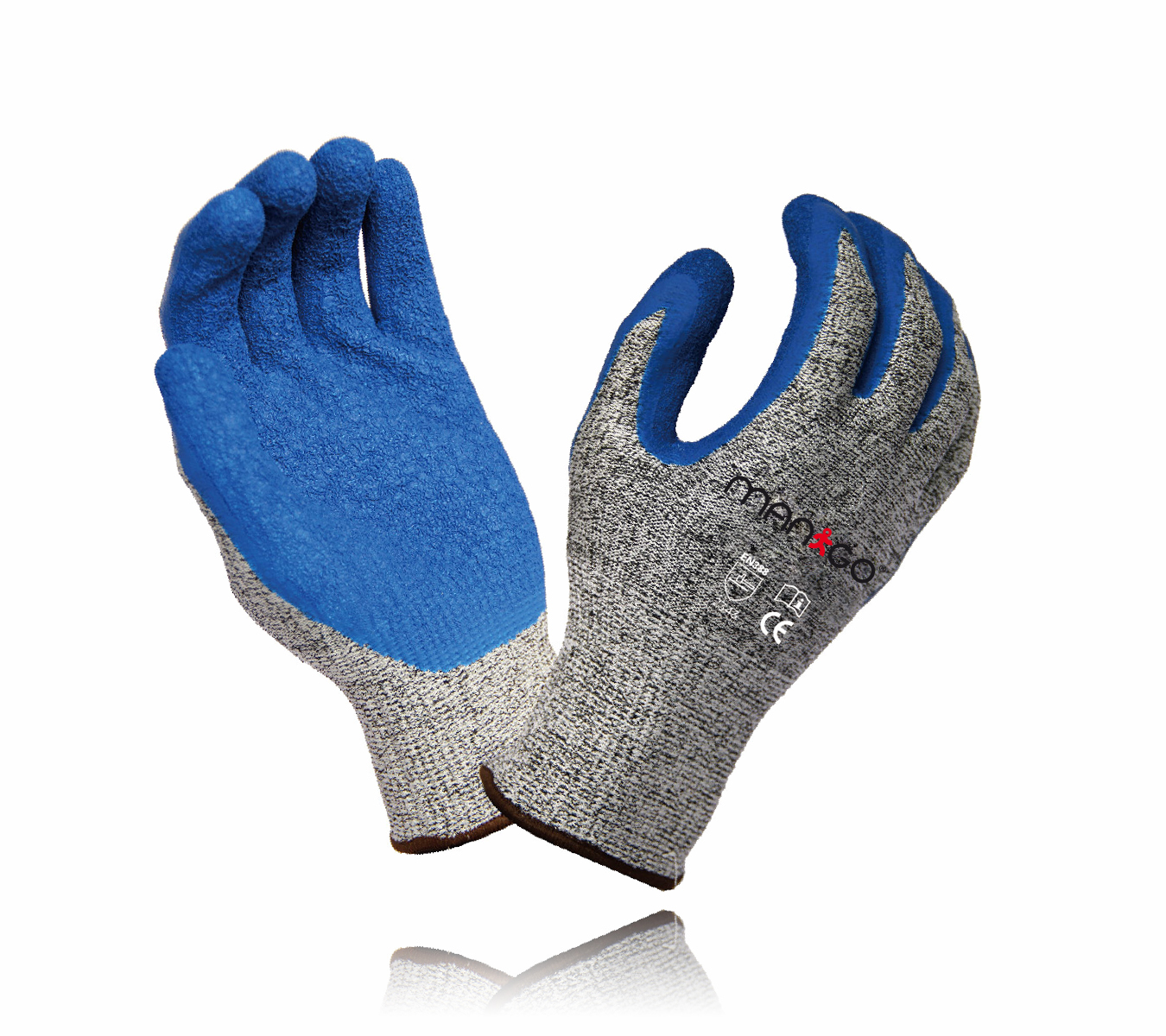 Перчатки от порезов с рельефным латексным покрытием на ладони. Плотность вязки 13