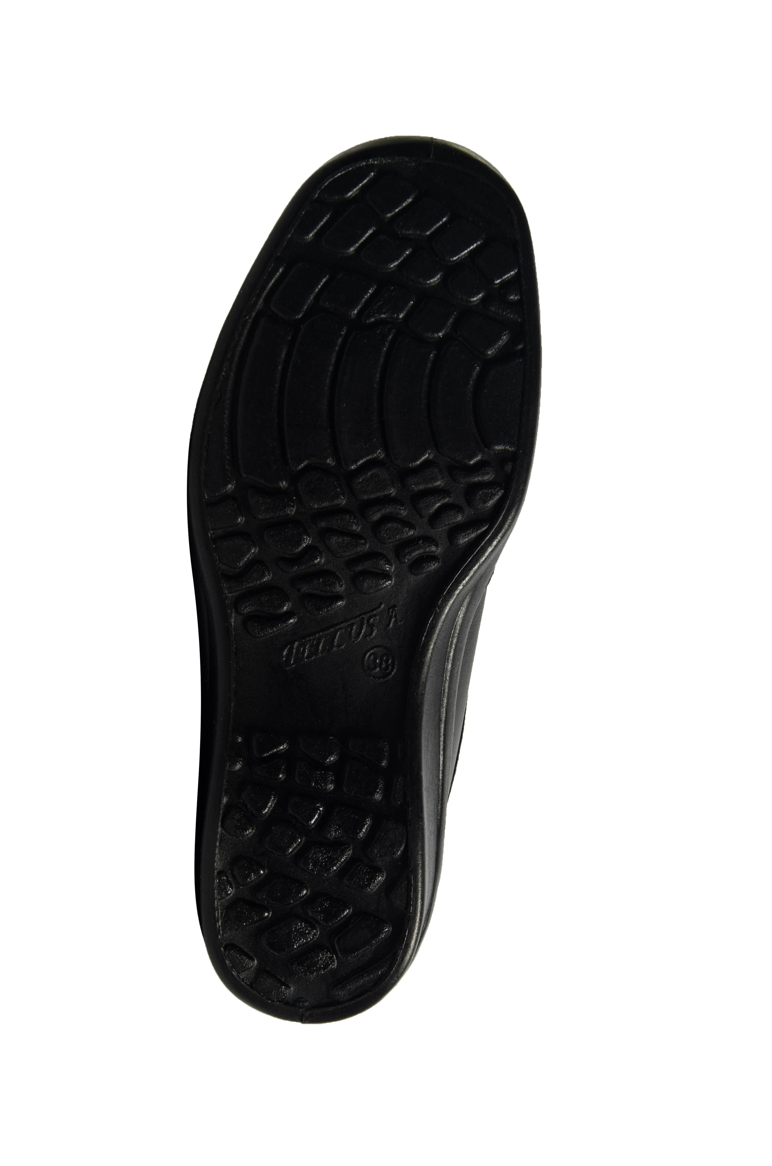 Обувь изготовлена из натуральной гладкой кожи без перфораций, с кожаной подкладкой. Подошва – термо-, маслобензо-, кислотощелочестойкая, антискользкая: полиуретан — монолитный, износостойкий, ударопоглощающий (очень легкая). Удобная стелька, анатомической формы. Носок уплотненный. Колодка разработана для нашего региона, учитывая все анатомические особенности. Для комфортной эксплуатации язычок в туфлях на резиновой вставке.